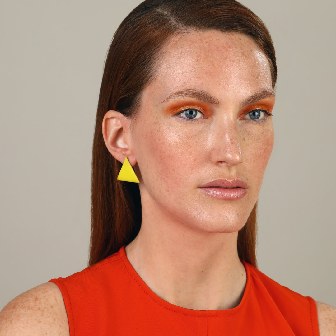 Bau triangle - stud earrings with enamel - yellow - silver 925