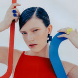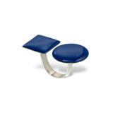 The circle and the square - adjustable ring with enamel - blue